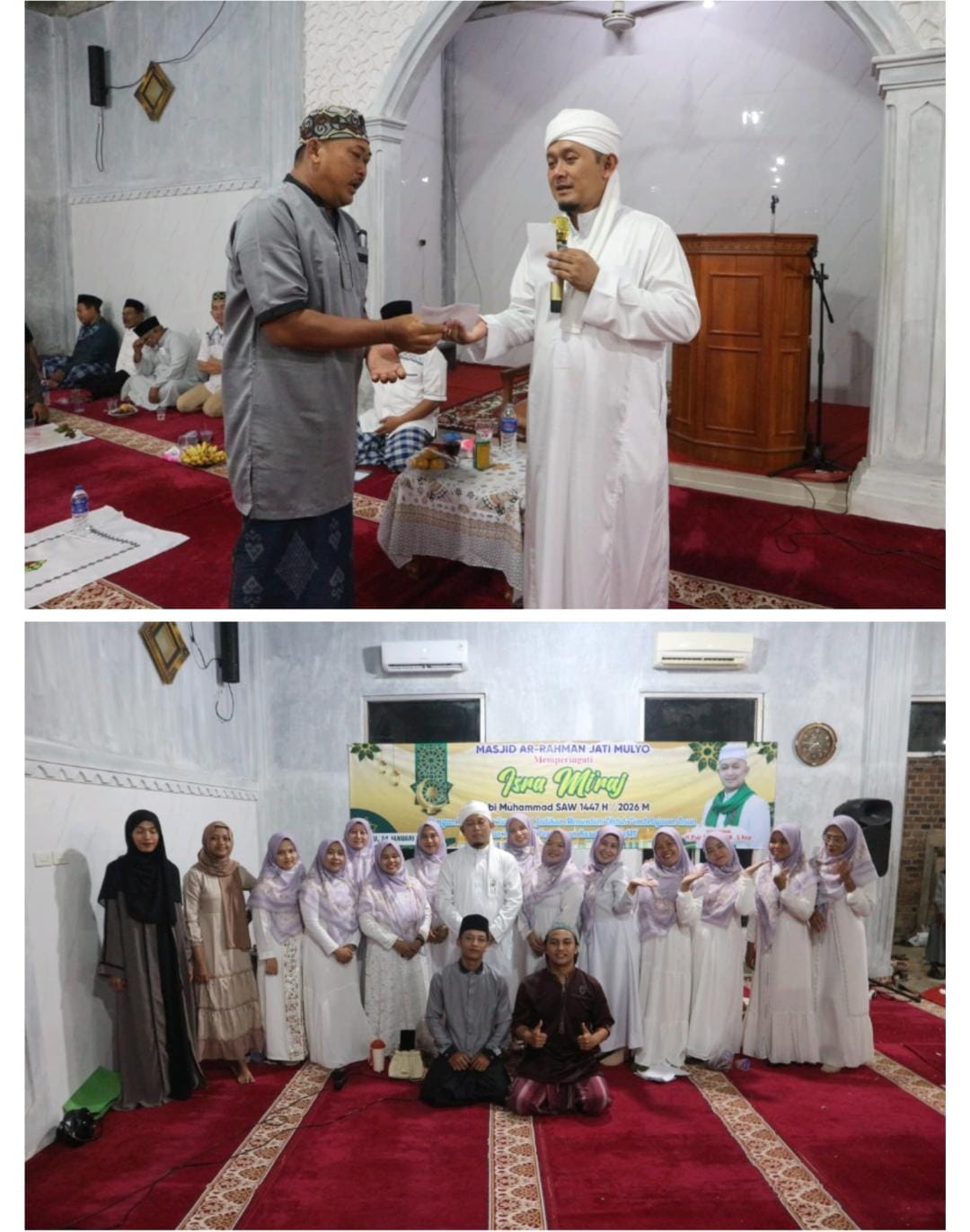 Lampung Selatan — Anggota DPRD Provinsi Lampung Komisi V, Puji Sartono, S.H., S.Kep, menghadiri sekaligus menjadi penceramah dalam acara Peringatan Isra Mi’raj Nabi Muhammad SAW 1447 Hijriah yang digelar di Masjid Ar-Rahman, Desa Jatimulyo, Kecamatan Jatiagung, Kabupaten Lampung Selatan, (Sabtu 24 Januari 2026)