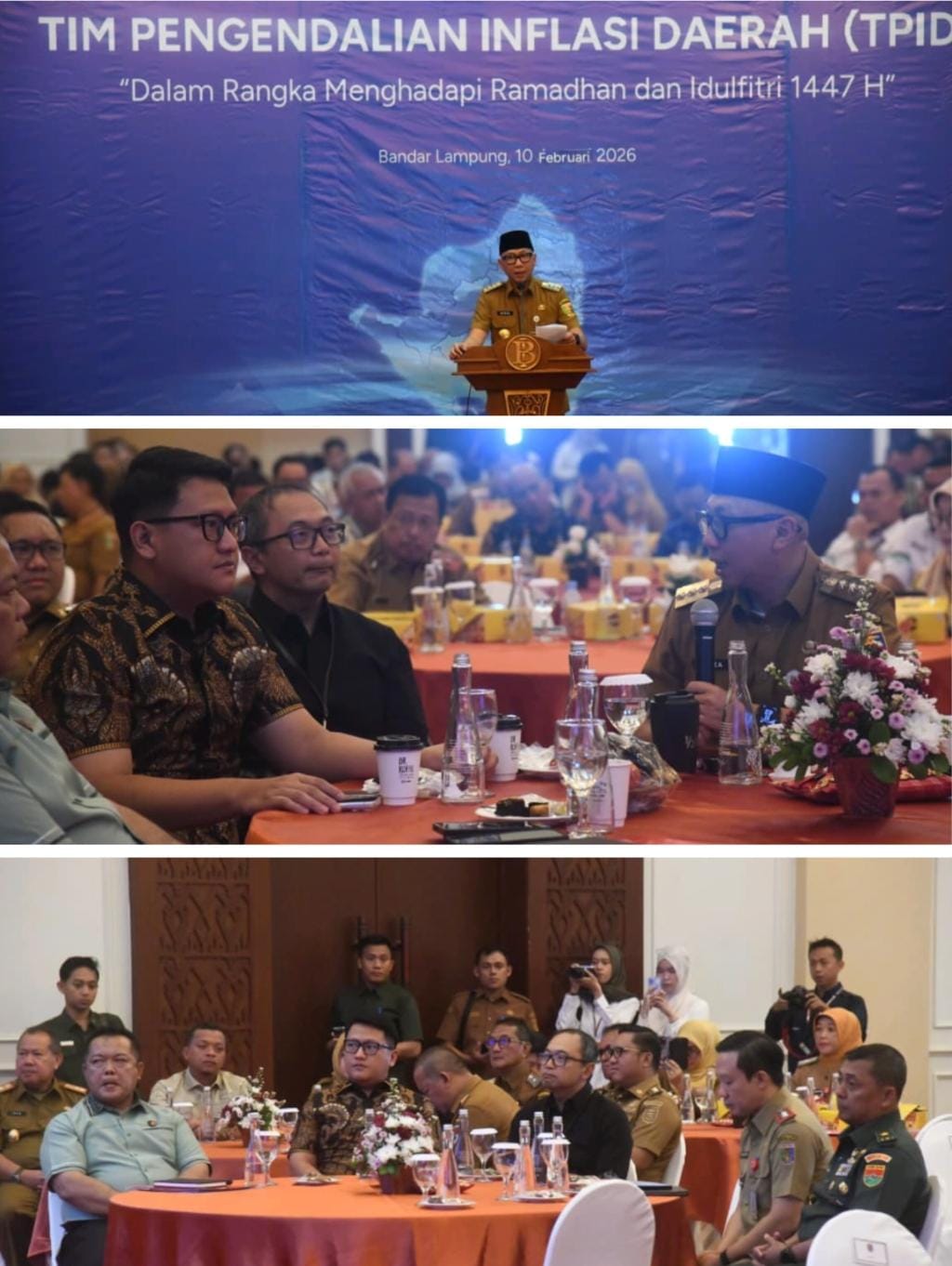 Melalui pelaksanaan High Level Meeting TPID ini, Pemerintah Provinsi Lampung bersama DPRD Provinsi Lampung dan seluruh pemangku kepentingan memperkuat koordinasi dan sinergi dalam pengendalian inflasi daerah, guna menjaga stabilitas harga, kelancaran distribusi, serta ketersediaan bahan kebutuhan pokok bagi masyarakat menjelang Ramadan dan Idulfitri 1447 Hijriah. (Tim Humas)