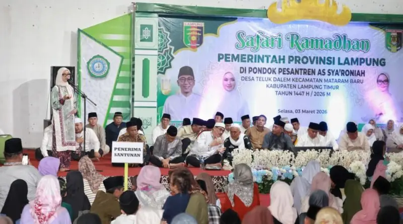 Lampung Timur–Pemerintah Provinsi Lampung menggelar Safari Ramadhan 1447 Hijriah/2026 Masehi bersama santri dan masyarakat, di Pondok Pesantren As Sya’roniah, Desa Teluk Dalem, Kecamatan Mataram Baru, Kabupaten Lampung Timur, Selasa (03/03/2026).