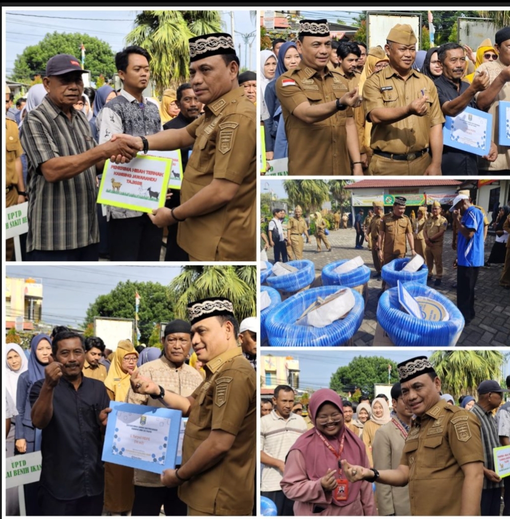 METRO — Walikota Metro, Bambang Iman Santoso, menyerahkan Bantuan Alsintan untuk Kelompok Tani, Hewan Ternak untuk Kelompok Ternak, dan Sarana Produksi Perikanan untuk Kelompok Pembudidaya Ikan. Acara ini berlangsung di Halaman Kantor Dinas Ketahanan Pangan, Pertanian, dan Perikanan (DKP3) Kota Metro, Selasa (25/11/2025).